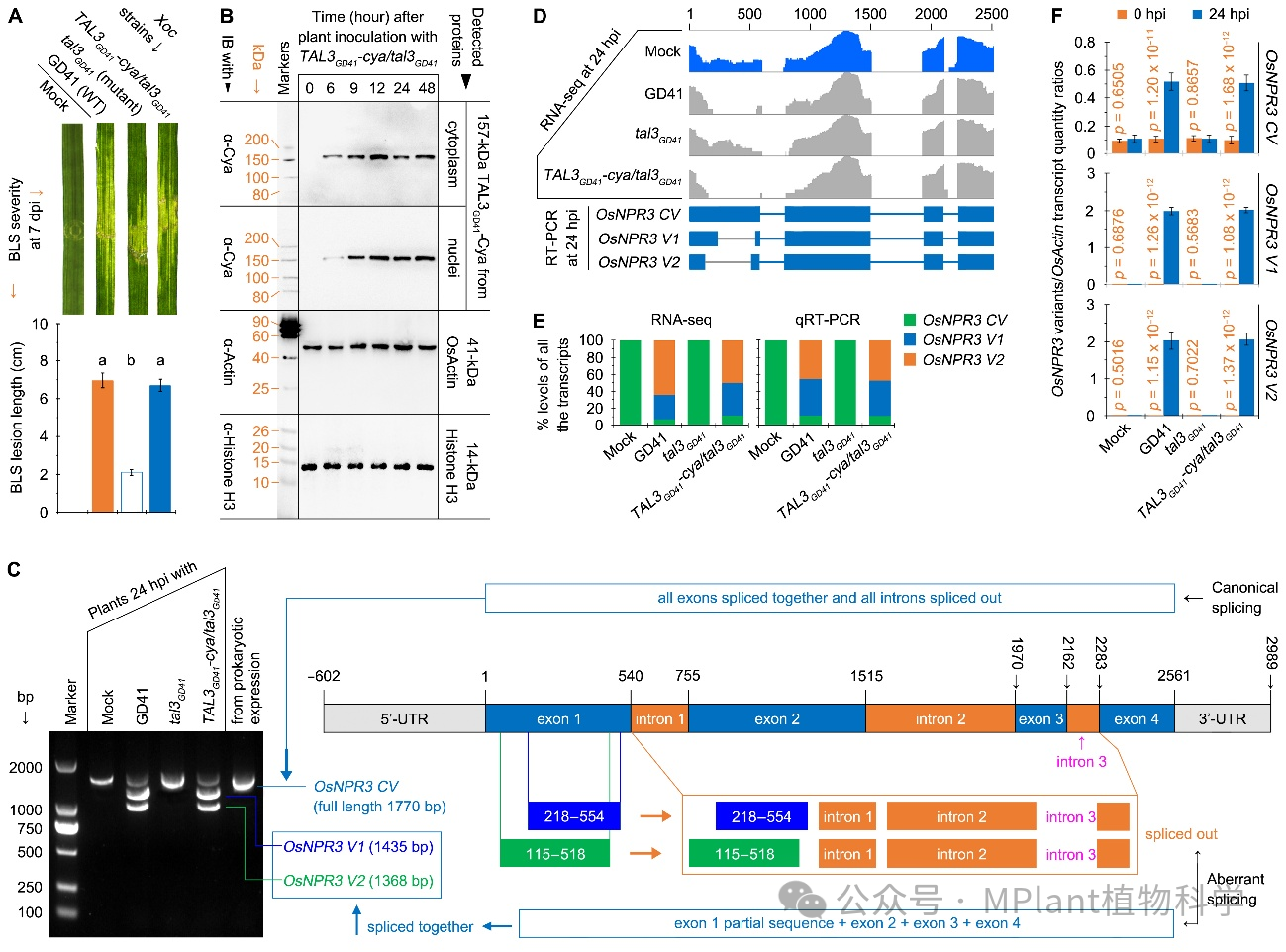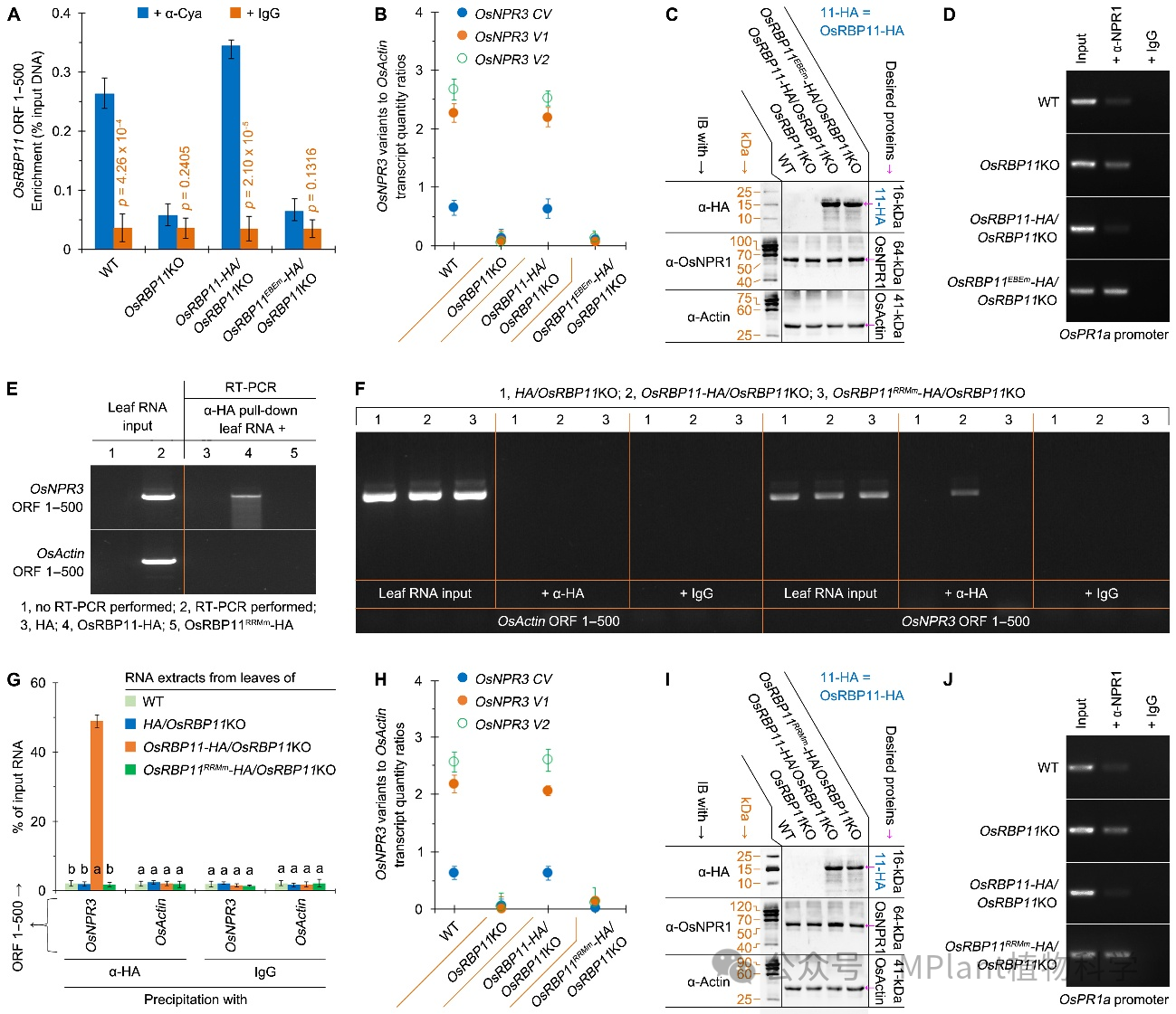 图4. 代表性tales靶向osrbp11促进osnpr3可变剪接从而抑制防卫反应基因表达
