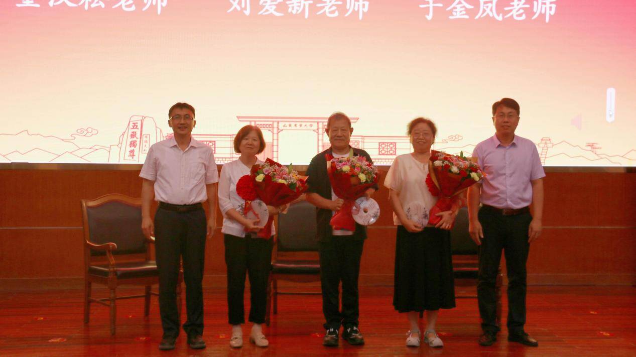 仪式上,安宁书记与院长原雪峰共同为董汉松、刘爱新、于金凤三位荣退教师颁发纪念品并献上鲜花,感谢他们多年来在教育教学、科学研究和社会服务等方面的辛勤付出与突出贡献。